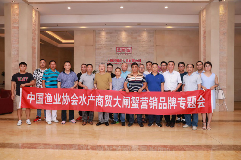 6月29日,中国渔业协会水产商贸大闸蟹营销品牌座谈会,于上海苏蟹阁实业有限公司内隆重召开。大闸蟹营销品牌联盟理事长葛锦海、执行理事长杨国伟、荣誉理事长杨维龙、上海海洋大学教授成永旭等二十位领导嘉宾出席本次会议,并莅临苏蟹实业有限公司进行参观与指导。